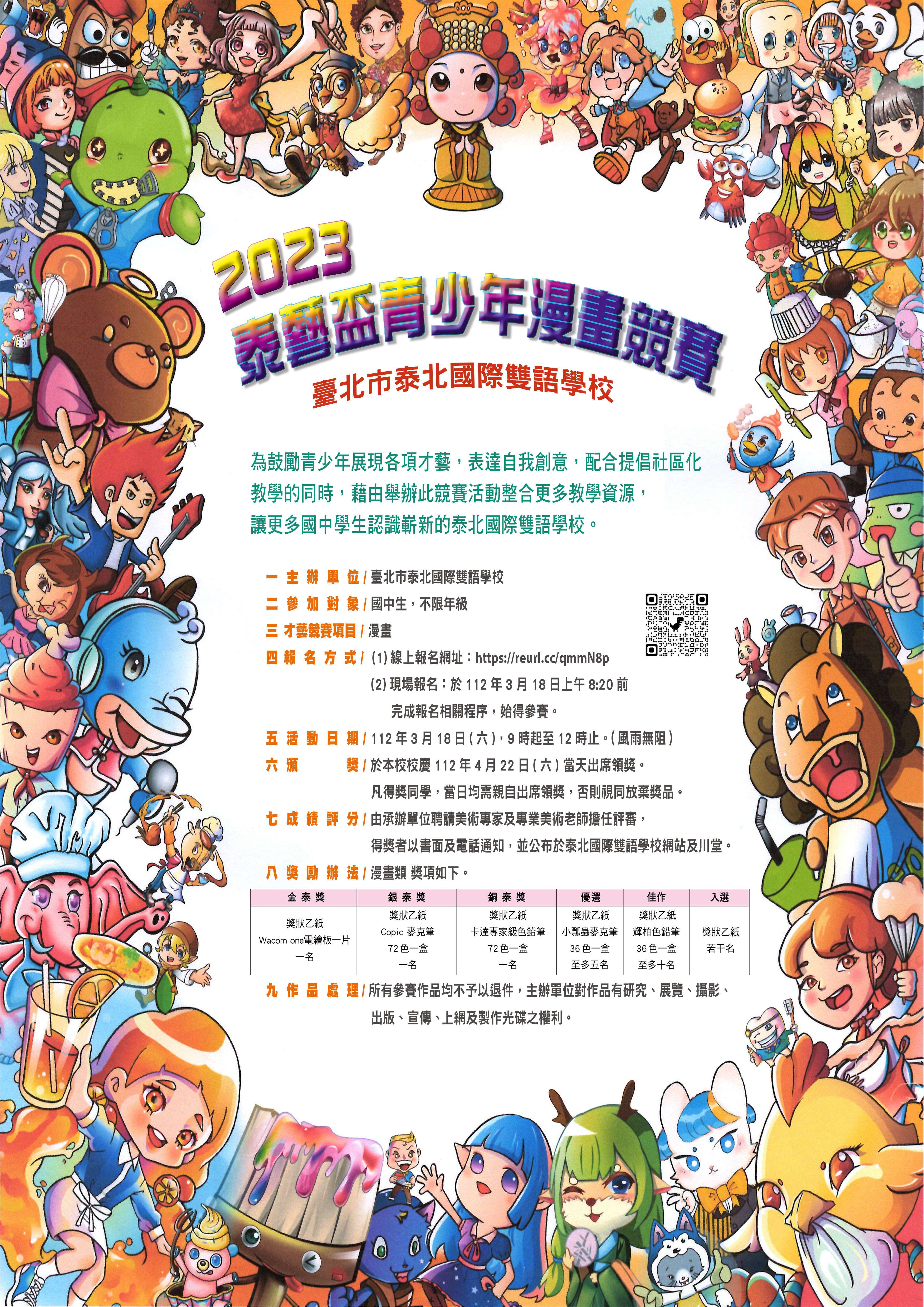 一、為推廣美術教育,鼓勵青少年美術創作風氣,本校秉持多年來對美術教育不遺餘力的精神,積極配合提倡社區化教學,特舉辦「泰藝盃」青少年漫畫比賽,藉此鼓勵對漫畫創作有興趣的青少年朋友,提昇美術創意教育。