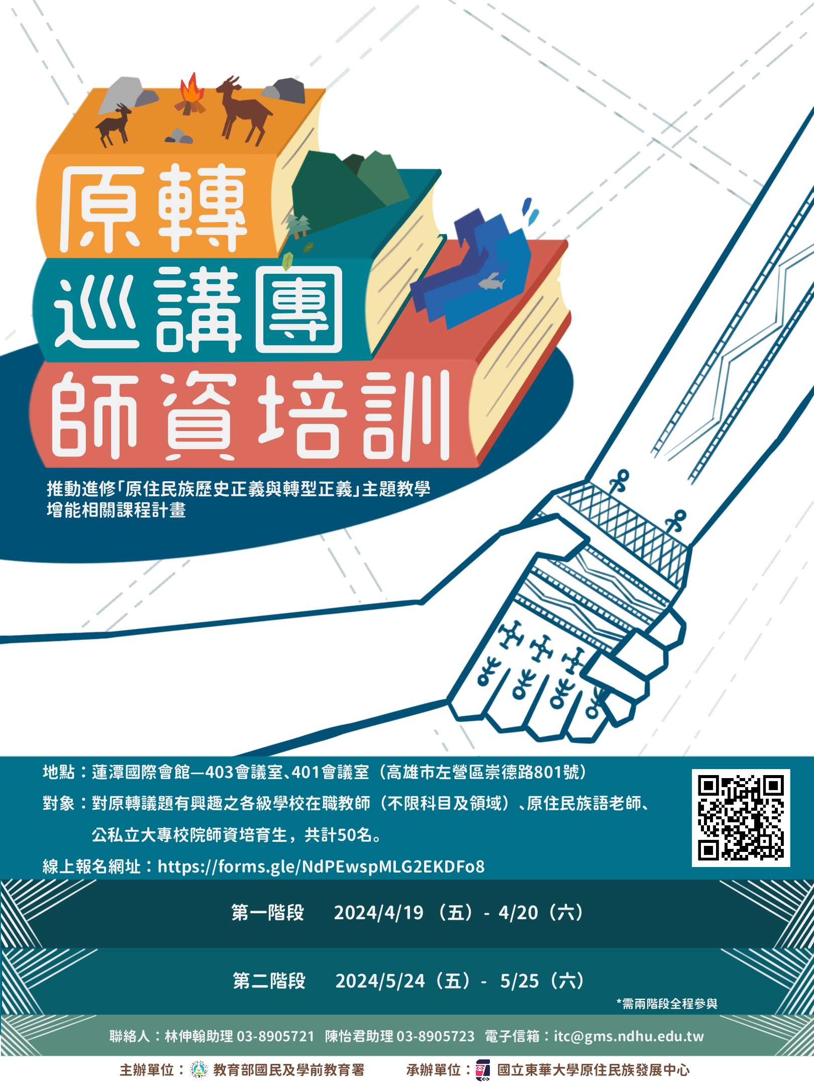 轉知-「推動進修原住民族歷史正義與轉型正義主題教學增能相關課程計畫」-原轉巡講團師資培訓(初階班)實施計畫及活動海報