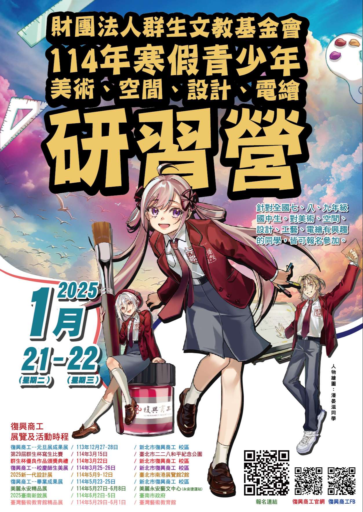 三、參加對象:凡全國國中七、八、九年級,對美術、設計、工藝、電腦有興趣者,皆可報名參加,有報名學生之國中老師,可免費參加研習營(各班別限5名老師,額滿為止)。