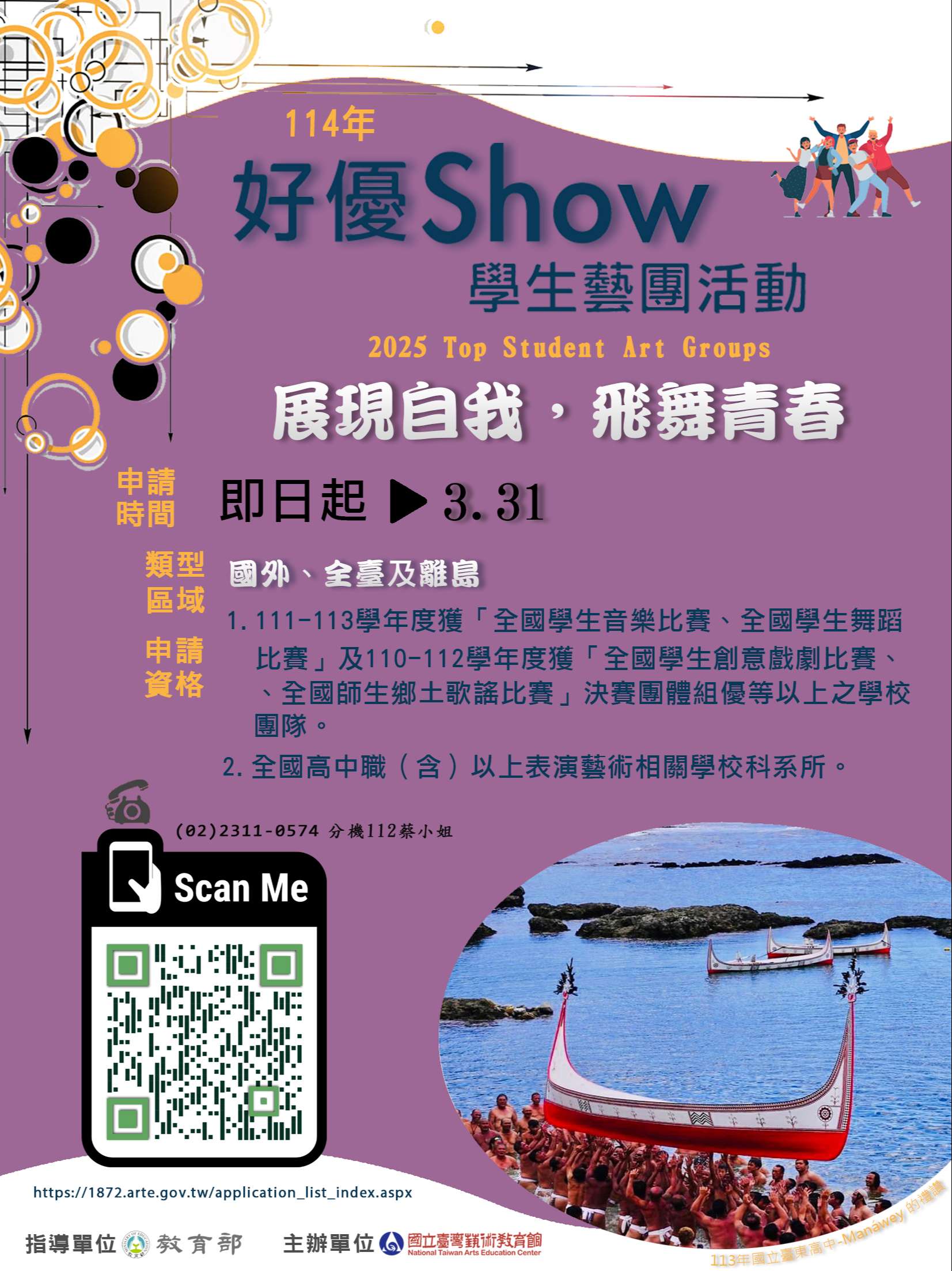 一、依據國立臺灣藝術教育館113年12月11日藝演字第1130003894號函辦理。