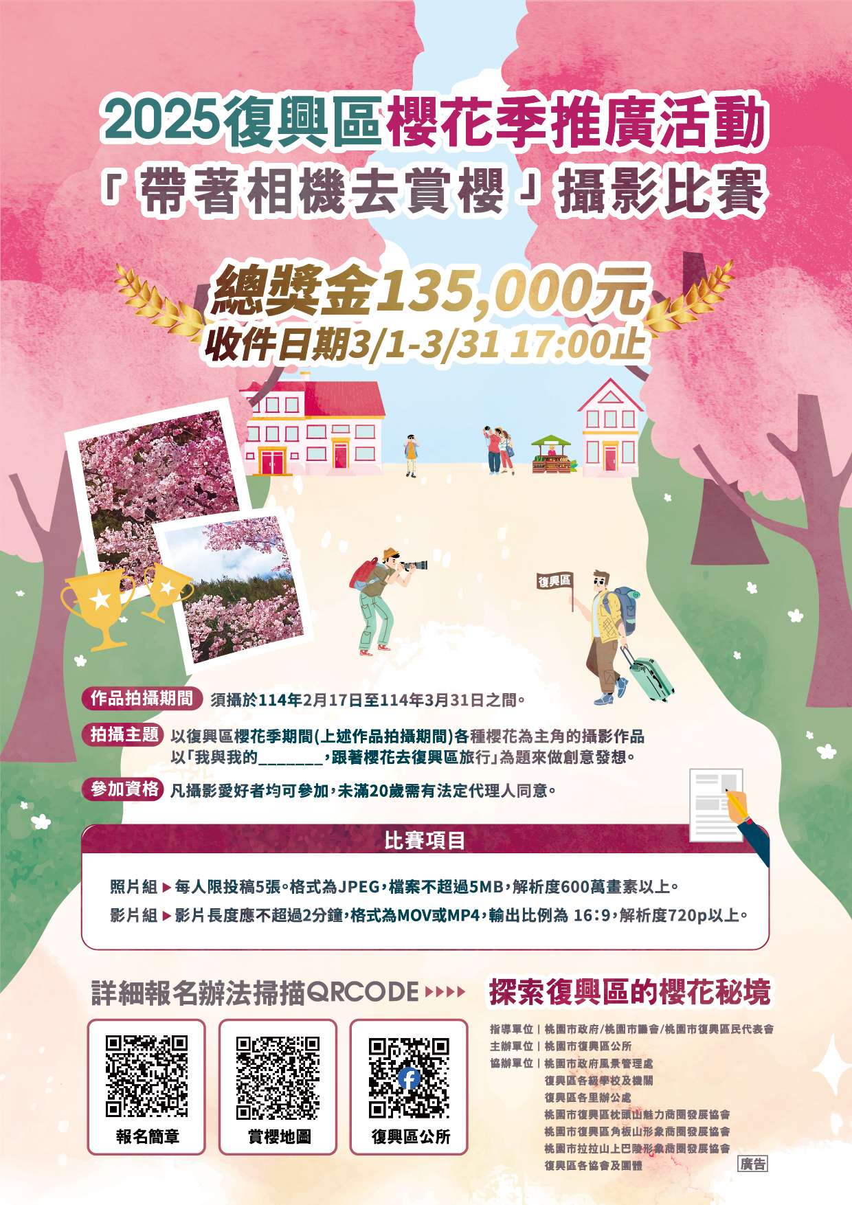 一、依據桃園市復興區公所114年2月14日復區文觀字第1140004530號函辦理。二、旨揭活動內容請見附件原函說明及海報。