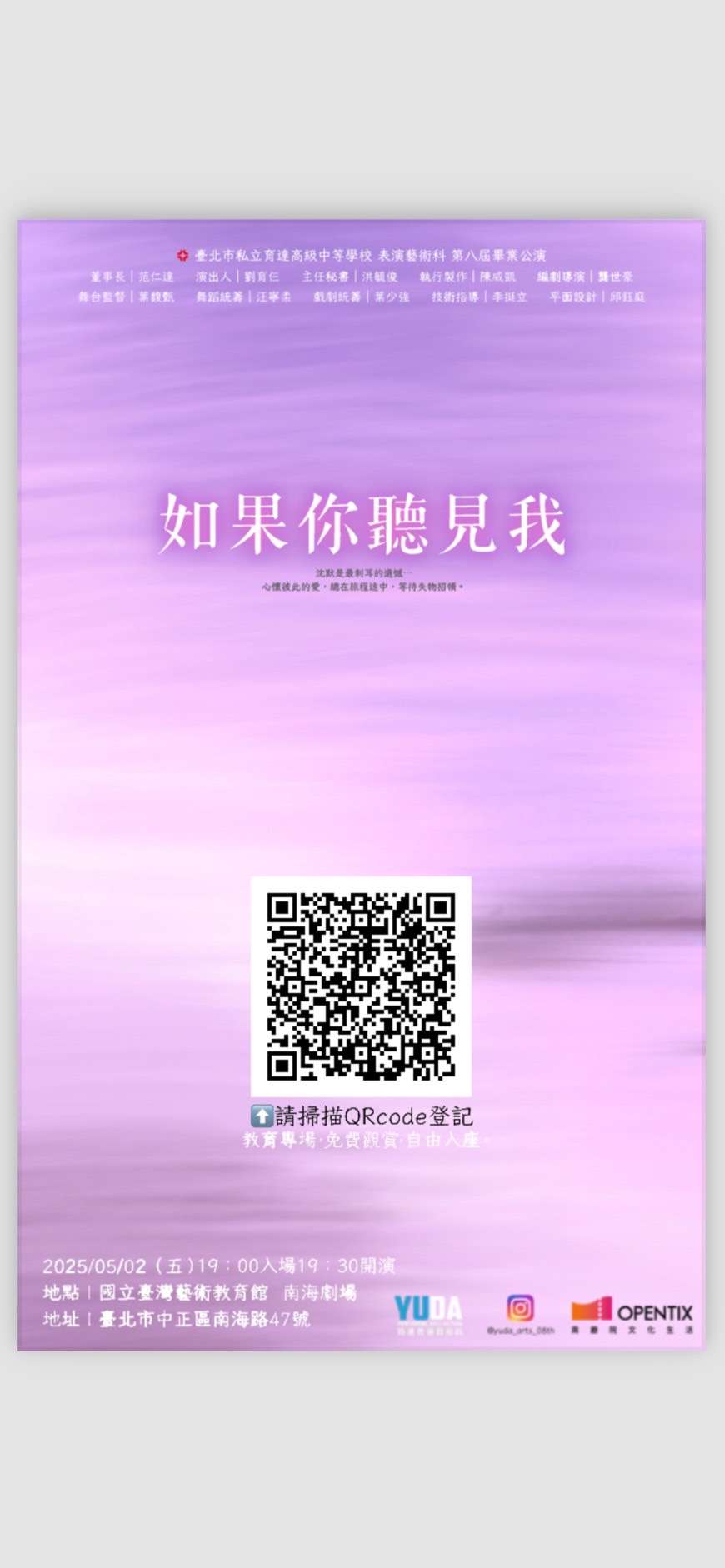 (一)活動名稱:臺北市私立育達高中第八屆表演藝術科畢業公演《如果你聽見我》【教育專場】