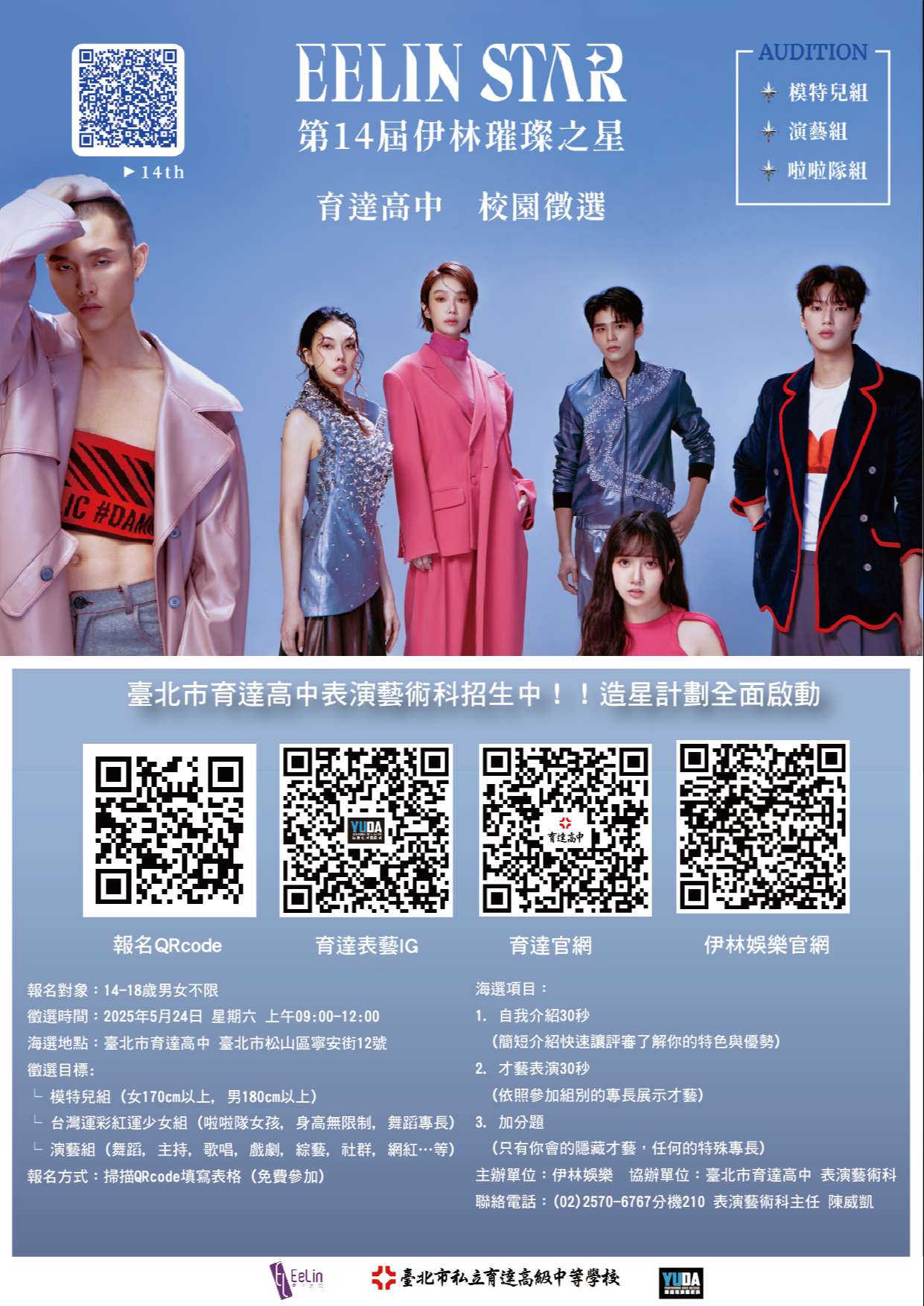 一、伊林娛樂與育達高中表演藝術科共同舉辦「2025伊林璀璨之星校園徵選」。