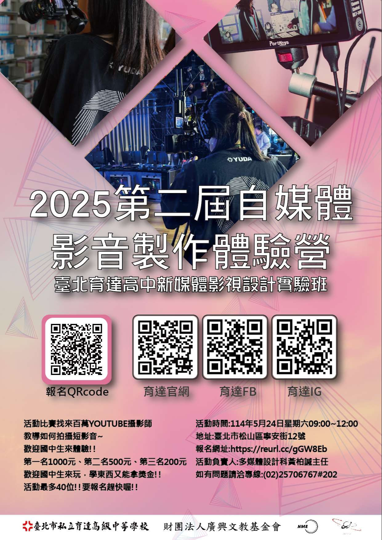 (三)辦理地點:臺北市育達高中(臺北市松山區寧安街12號)四、報名網址:https://reurl.cc/MOXmjm