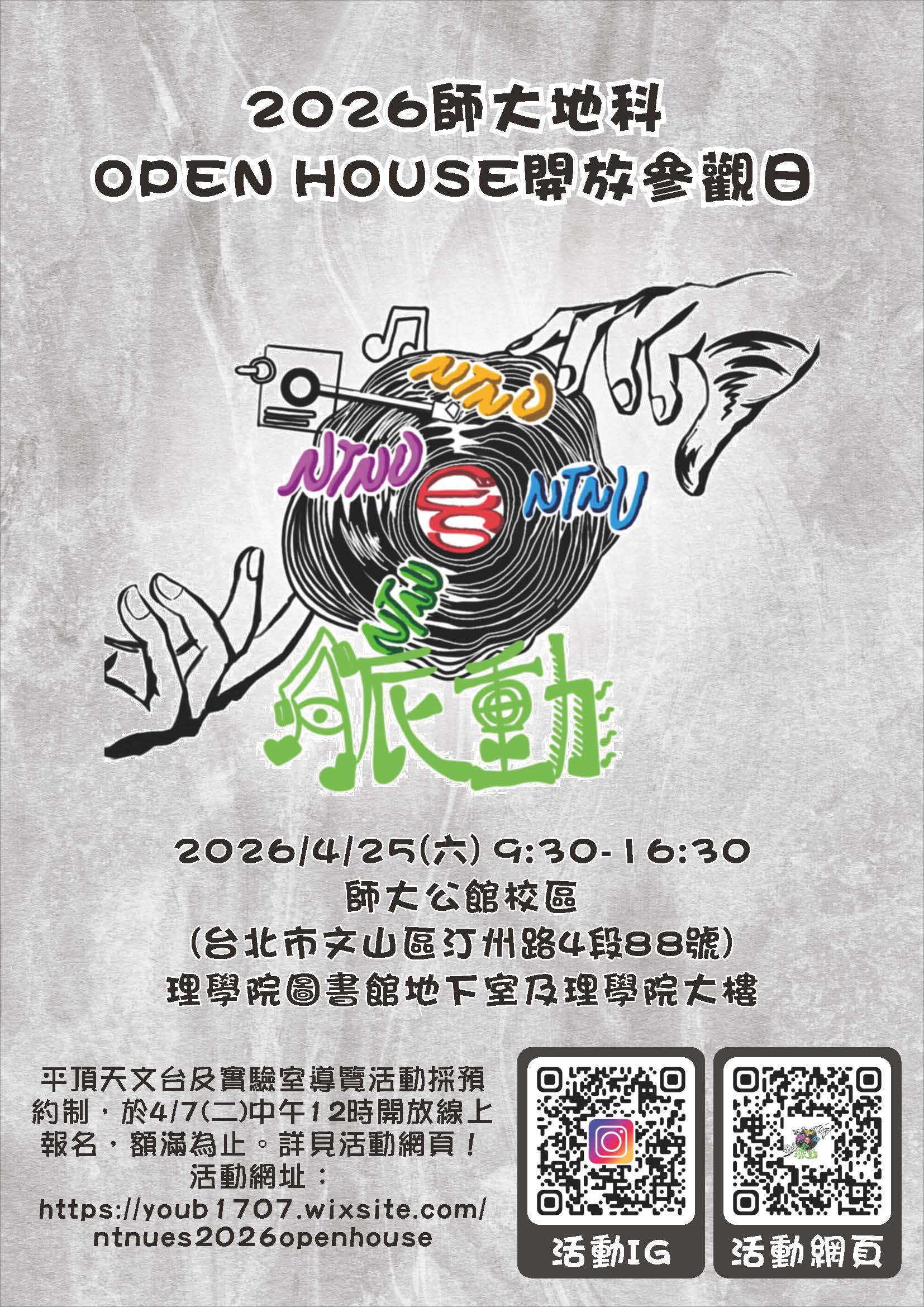 (五)活動網頁:https://youb1707.wixsite.com/ntnues2026openhouse(詳細活動內容及報名方式請參閱活動網頁)