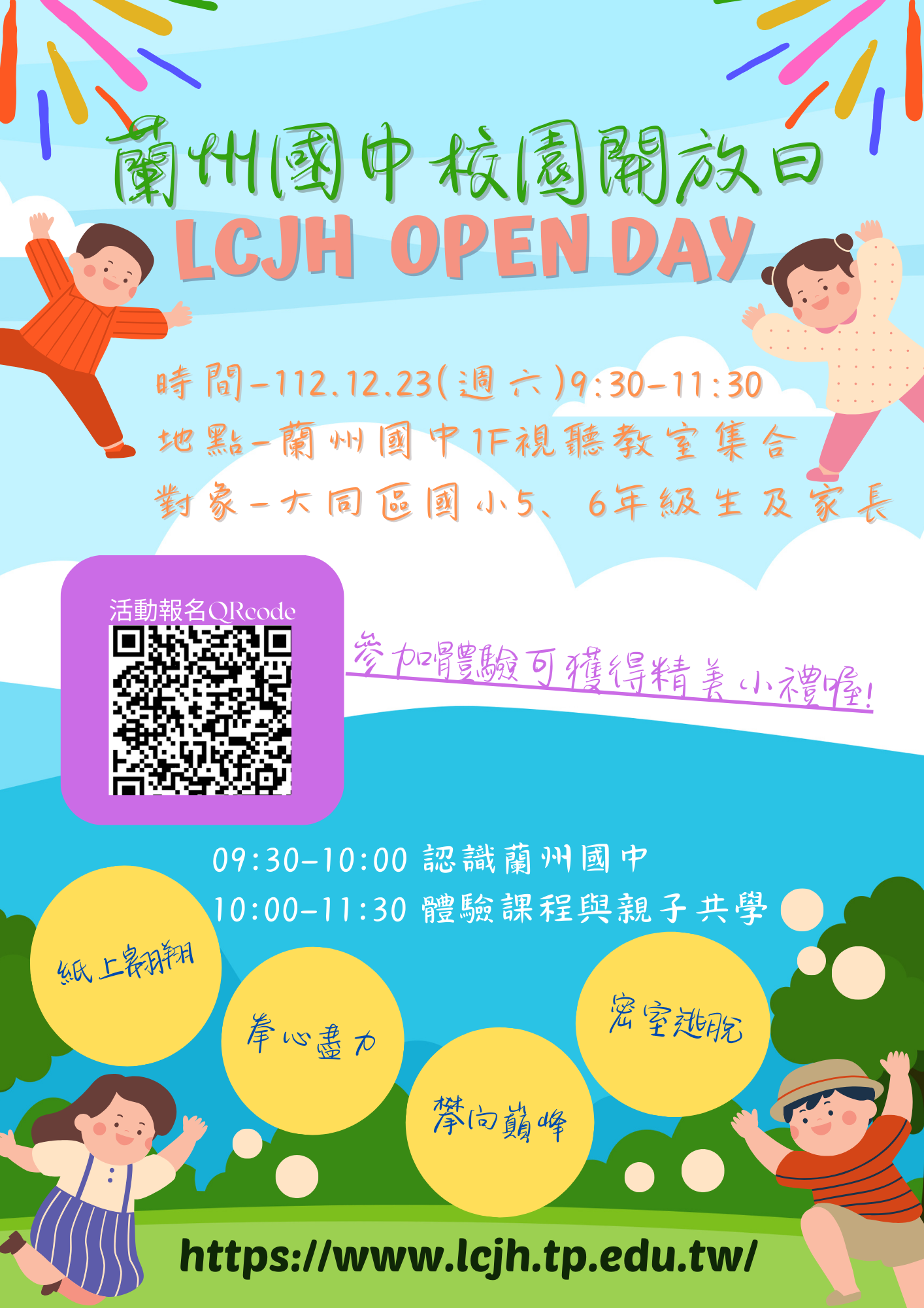 為了讓家中有國小五、六年級孩子的您與貴子弟對於國中生涯有更清楚的認識與了解,邀請您與您的孩子蒞校參訪,我們將於對本校特色及課程進行簡介,並設計體驗課程引導學生能熟悉國中的學習特色,以利銜接未來的國中,參加便可獲得精美小禮物喔。